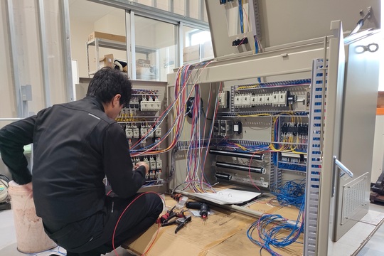配電盤・制御盤・分電盤の設置、工場内の電気・計装工事、空調設備工事、住宅新築工事など、幅広い電気工事に対応しています。
