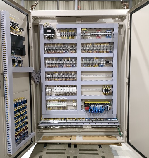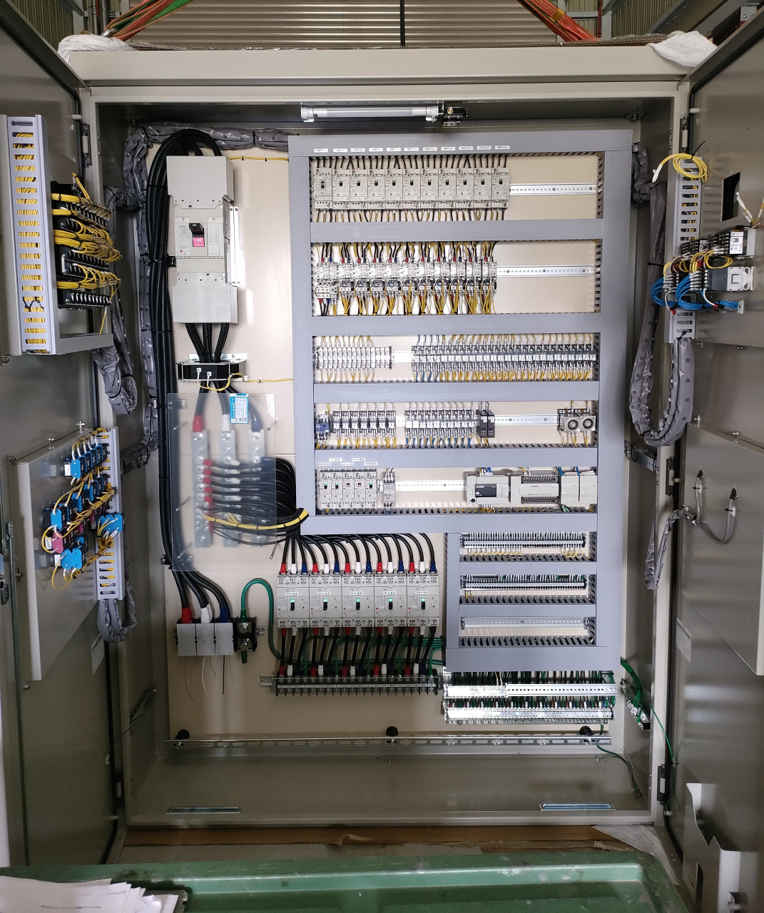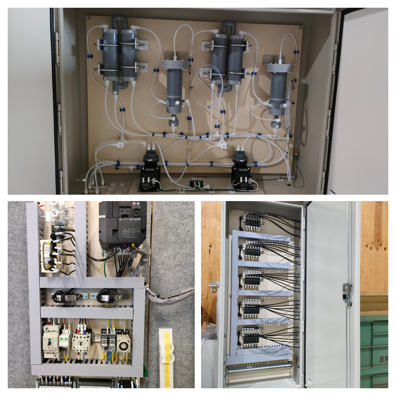 当社では配電盤と制御盤の設計および製造を行っています。また、取付架台の製造も手掛けています。設計、製造、電気工事、アフターメンテナンスまで、すべてを一貫して対応する体制が整っています。